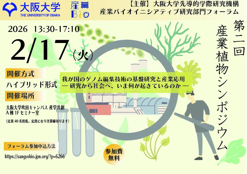 2/17に村中俊哉特任教授(当該部門)が「第2回産業植物シンポジウム」を開催します。